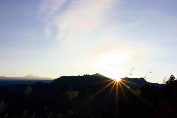 終於,在早上七點,我們在離塔塔加不遠的地方找到一處可觀賞日出的景點,架好腳架等了半响, 7:15 am,2007年最後一個旭日終於從遠方的山背上緩緩昇起 ...