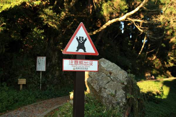如願看完了日出,本來預定的行程是下山回到石桌再開往特富野,很巧,就在我們看日出的景點旁邊剛好就是通往特富野的古道入口。 不過,走這條古道到特富野來回少說也要花四五個小時,原本我們並不打算走它,只因這個「熊出沒」的警示標誌讓我好奇的想一探究竟,索性給它走上一段瞧瞧,真的有熊嗎?