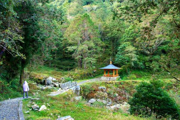 走了約半個多小時,忽然豁然開朗,山谷裡佇立一個涼亭,今朝就走到這吧,他日有緣再來竟全功。