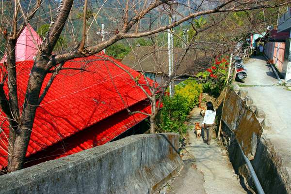 在阿里山鄉,幾乎家家戶戶都有種花,公路兩旁也是,花色鮮豔且以紅色為主,像聖誕紅、九重葛、山櫻花等,在歲末聖誕假期裡,更是應景。