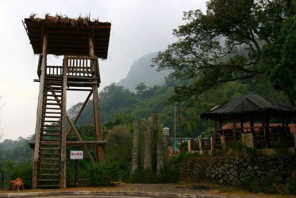 開了好一段山路,天色漸漸暗下,濃霧又起,正想放棄時,看到這個瞭望台,終於,來到這個傳說中的藍色部落,里佳。